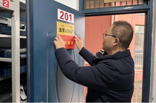 学工办主任郭慧、团委副书记杜伦、全体党员共同参与,深入“一站式”学生社区开展党员寝室挂牌活动,以实际行动筑牢育人根基,传递组织关怀。